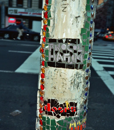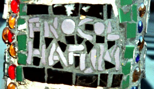 Exterior of the famous theatre, with a tiled pillar
