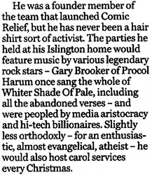 From 'Planet of the Japes' : a big profile of Douglas Adams in the UK's The Guardian, Saturday Review, 3 June 2000 |