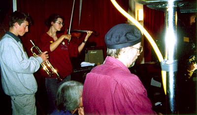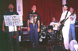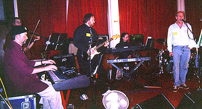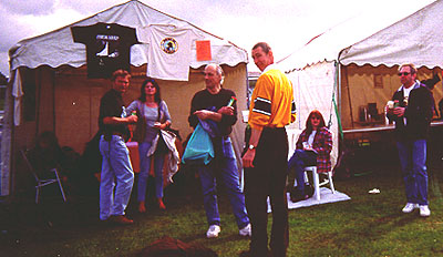 Casbah' Inside the Procol Pavilion: to Gary's left are Rob Barnes, Diane Rolph, Mal่ne Lemoine, Greg Panfile and Mirek Plodzik; enjoy Mal่ne's intent expression! In tent geddit? |