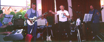 | Dave Ball joins the Palers' Band at the afternoon soundcheck: here they are playing Conquistador | ||||||||