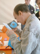 A customer scrutinises Live at the BBC, one of two official live albums for sale that day |