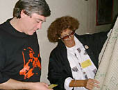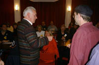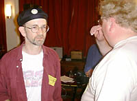 Jens displays the Convention's star prize, a signed t-shirt (generously organised by Diane from Shine On) |