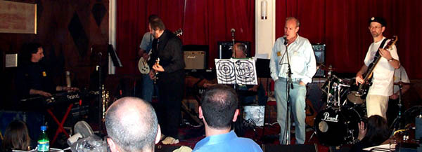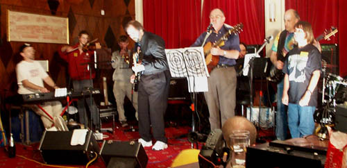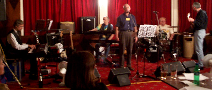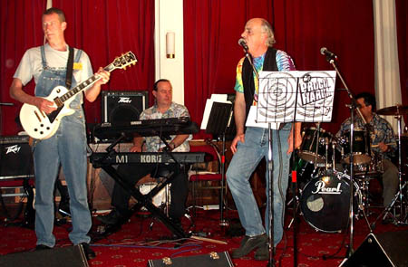 Most of the band in mid-Geek in the centre, guitarist Richard Beck, solid as solid could be |