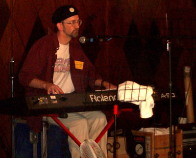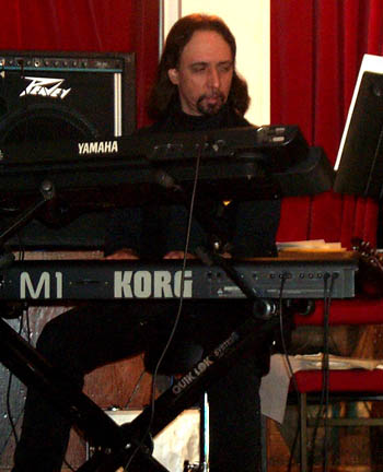 Dave Ball in mid-Conquistador, with former band-mate Sev Lewkowicz on organ |