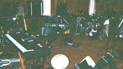 At the Civic Hall, the band gear … thanks to Ben Wiles for the loan of the piano, to Sev Lewcowicz for the Korg, to Roscoe Chubb for the drums … full list of sponsors here |
