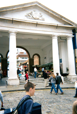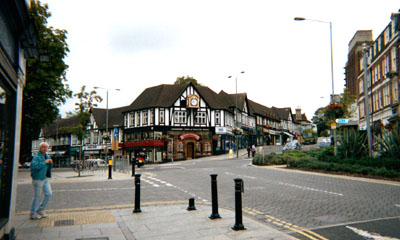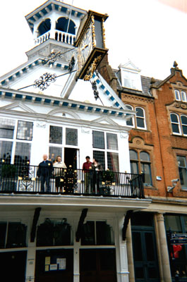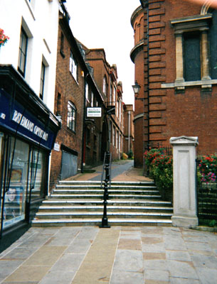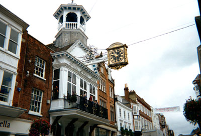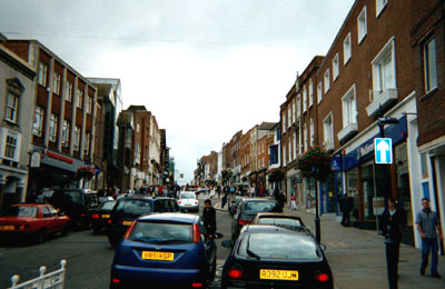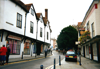 At the bottom of the town, where modern buildings jostle the Georgian frontages. Guildford is very hilly, as people who walked up from the Railway Station will remember. |