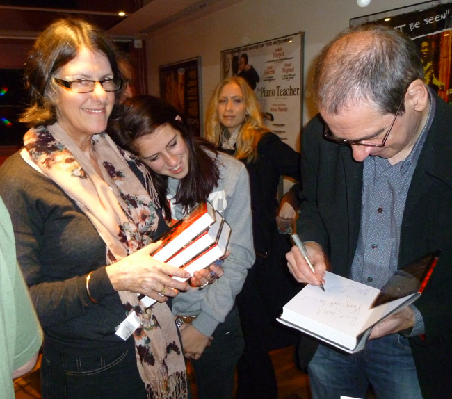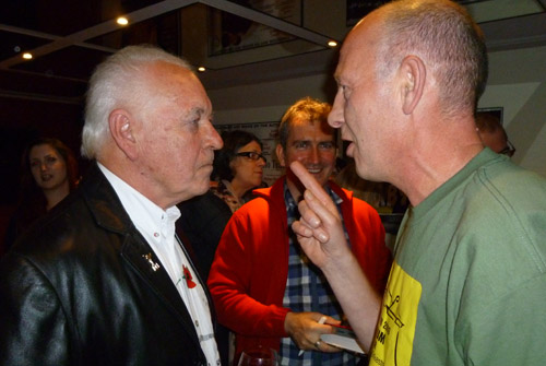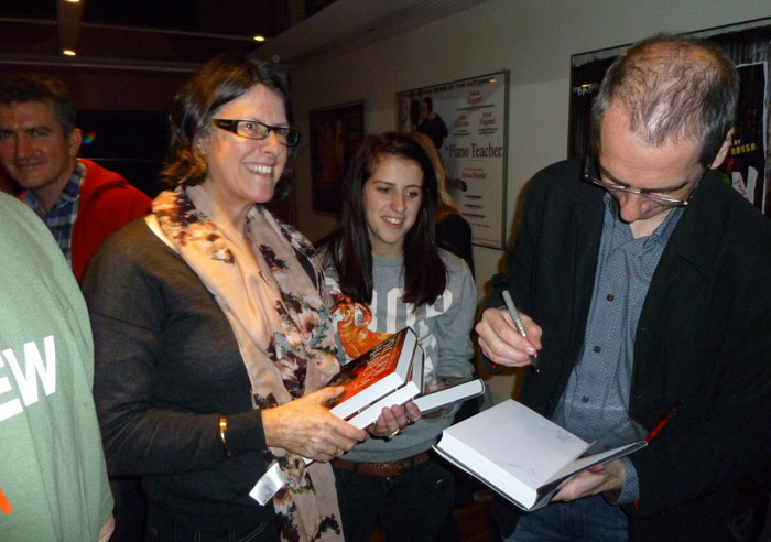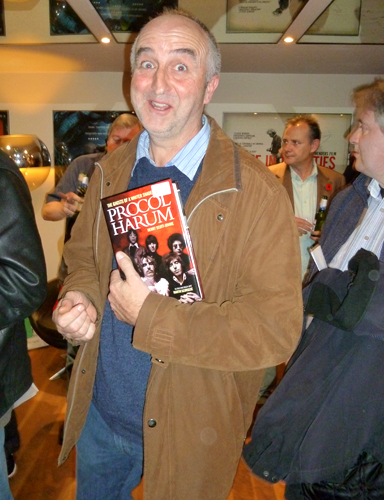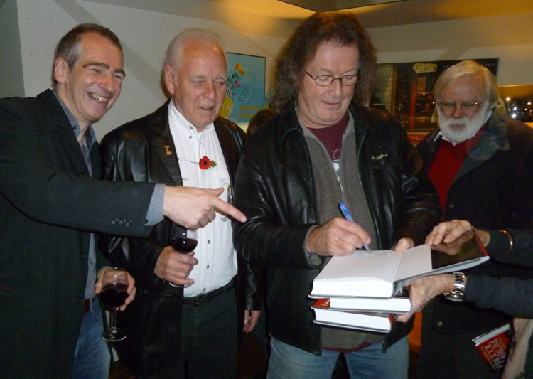 A jubilant Henry Scott-Irvine with Gary Brooker, Geoff Whitehorn (signing three copies of Henry's book) and Peter Christian