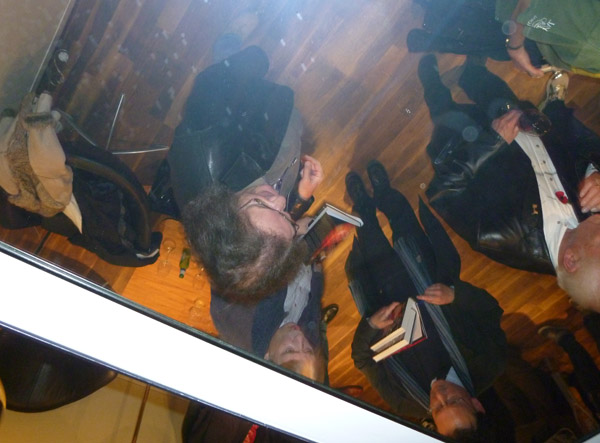 The ceiling of the BFI green-room is all mirrors ...