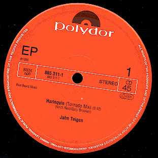 Harlequin was first released by the Hollies on their 1979 album, Five Three One-Double Seven O Four. Jonny Moen, however, informs BtP that it was also recorded by the Norwegian artist, Jahn Teigen, in 1986. Above right is the label of a 12" maxi-single: Side 1 included a "Tornado Mix" of Harlequin, side 2 a "straight" version + one more song. As stated on the label, written by Keith Reid / Gary Brooker. The "straight" version was also released as a 7" single. When presenting this song on Norwegian Radio, Teigen said he'd got the song from Keith himself (which most likely is right). But he also said it was a new song, never before released by any artist! Which proves to be wrong, of course. I'd been playing the Hollies' version for ages, even listening to Gary's strong vocal at the end of that version! The lower scan shows the 7" cover, which looks exactly like the 12" cover. |