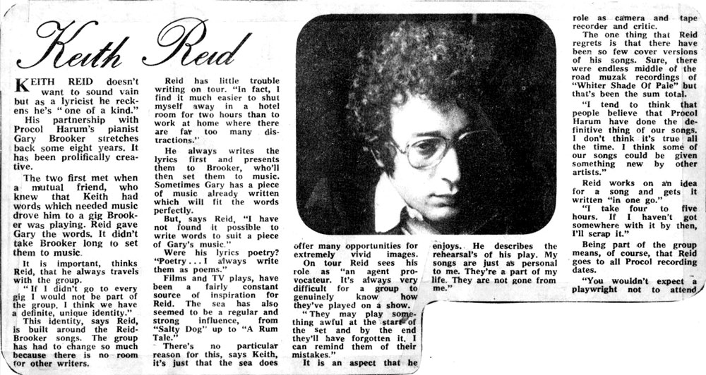 Keith Reid doesn’t want to sound vain but as a lyricist he reckons he’s 'one of a kind'.