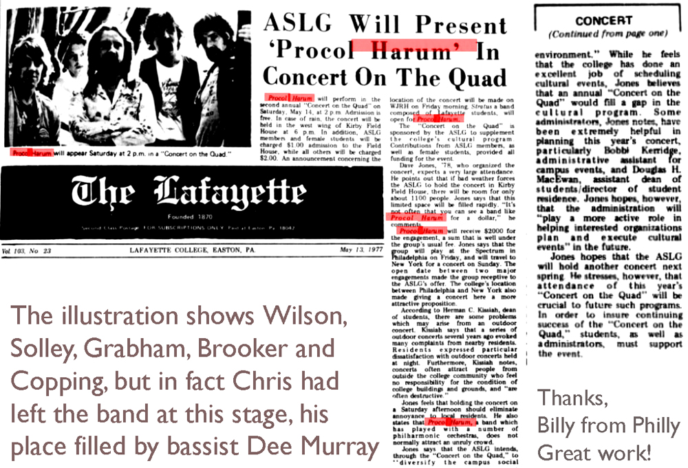 'When I look at BtP's list of Procol Harum concerts in ’77, the last two are the Spectrum on Friday, then the Palladium on Sunday, yet one list shows a Saturday show in Easton (close to my place), giving no detail.