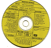 | This originally styled CD label is what studio work-up sheets looked like in days of old. Again, the attention to detail is laudable. Track listings, dates, times and all manner of studio sundry can be found. The CD is as much fun to look at as it is to listen to. | ![]() |
