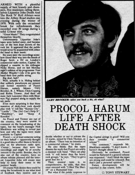 Obviously, he continued, Procol would be flattered if a general release was requested. 'And I think the tapes are strong and could be released. But that's just a personal opinion.'