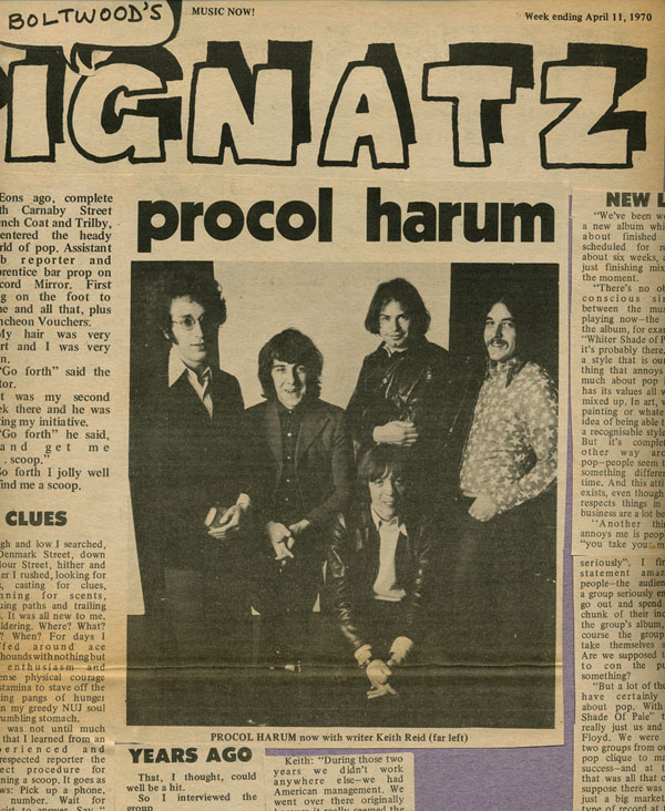 ‘There's no obvious or conscious similarity between the music we’re playing now – the music on the album, for example, and Whiter Shade of Pale. But it's probably there. We have a style that is our own. A thing that annoys me very much about pop is that it has its values all wrong, all mixed up. In art, writing or painting or whatever, the idea of being able to achieve a recognisable style is great. But it's completely the other way round in pop – people seem to expect something different every time. And this attitude still exists, even though in other respects things in the pop business are a lot better.