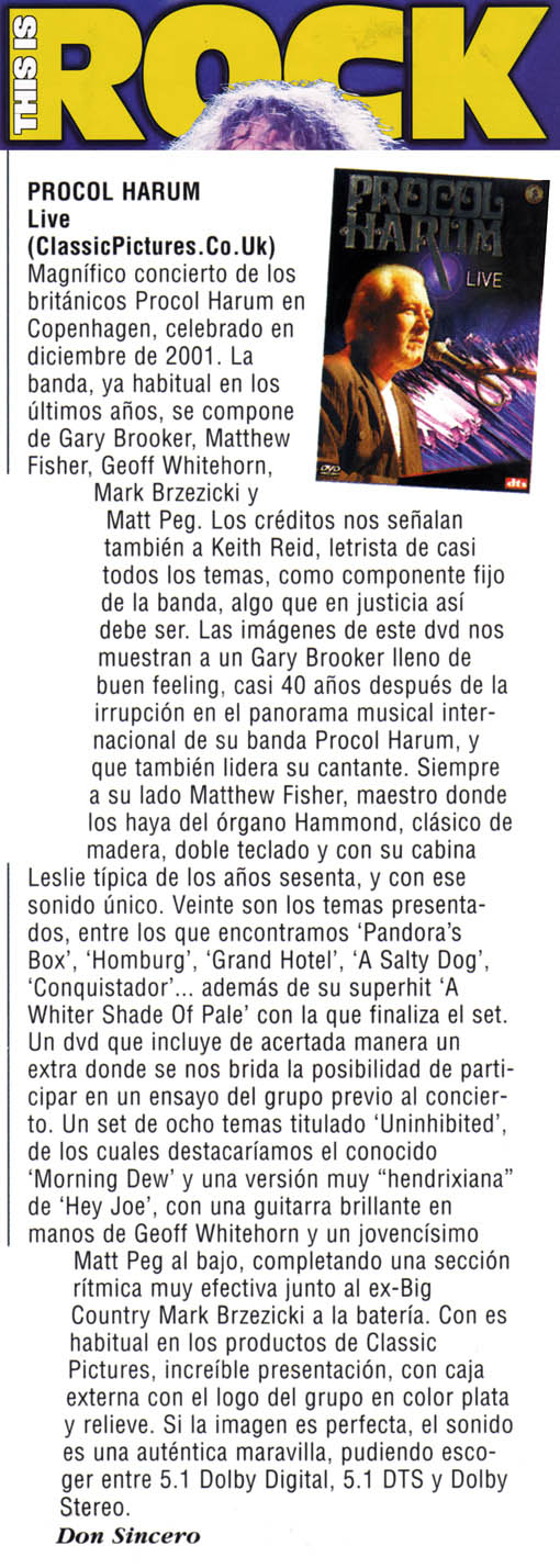 just (= Quite Rightly So!). A DVD that allows us the possibility to participate in the band’s rehearsal prior to the concert: a set of eight songs entitled 'uninhibited' includes the well known Morning Dew and a very Hendrixian version of Hey Joe with a brilliantly-played guitar in the hands of the illustrious guitarist Geoff Whitehorn and the youthful bass player Matt Pegg, completing a very effective rhythm section together with ex-Big Country drummer Mark Brzezicki. As usual like all products from classic pictures an incredible presentation of the packaging and box with the group logo in silver and relief. The images are perfect, the sound is an authentic marvel were you can choose from 5.1 Dolby digital, 5.1 dts and Dolby stereo. Don Sincero (Don Sincere) |