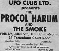 | 67xxxx | In the fall of 1967 I saw Procol Harum in Bedford New Hampshire USA. Rhinoceros was the opening act. A nearby college sponsored the show off campus. I remember it as it was my first real concert where people sat on the floor, smoked pot and they had a real San Francisco type light show. Awesome show... (Joe Connolly) | |