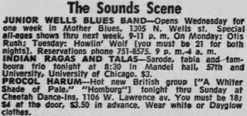 Debbie Goodman writes, 'I can't account for the discrepancies ... but I can say that the Fillmore East Preservation Page on Facebook mentioned interest in Village Theater play dates. Also, the Venue with 'Boston' in the name was probably in Mass., but I never heard of it. It had nothing to do with the Go Go as far as I know. I worked there in 1968/69. The dates I gave for Procol, which coincide with the dates David Pelletier gave, I got from the Go Go's web site. Those dates were given by a rock historian in Italy. He got the dates from newspaper ads for the club. Last night I looked at Go Go ads from the Village Voice newspaper online for 1967, and this is what I found: the 19 October ad said Procol Harum would be at the Go Go 26 October – 5 November. The 26 October ad said Procol would be at the Go Go 26, 28, 30 and 31 October,. and 1 November. Obviously, there were a lot of last-minute changes in Procol's schedule. I think it is safe to say that the band played the Café au Go Go the end of October and early November, 1967'. |