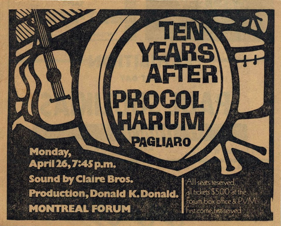 (Can anyone verify "1971 Melbourne, Victoria Australia at Festival Hall", a Procol Harum gig that Pat Herley remembers attending? Chris Copping reports to BtP: 'Hi guys – in case no one else confirmed it was 1973 that PH (including me) played Festival Hall Melbourne – September I think')