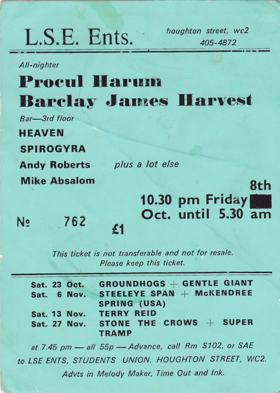 | 711009 | Leicester University, UK | See 'Procol for Europe' clipping (thanks, Martin) |