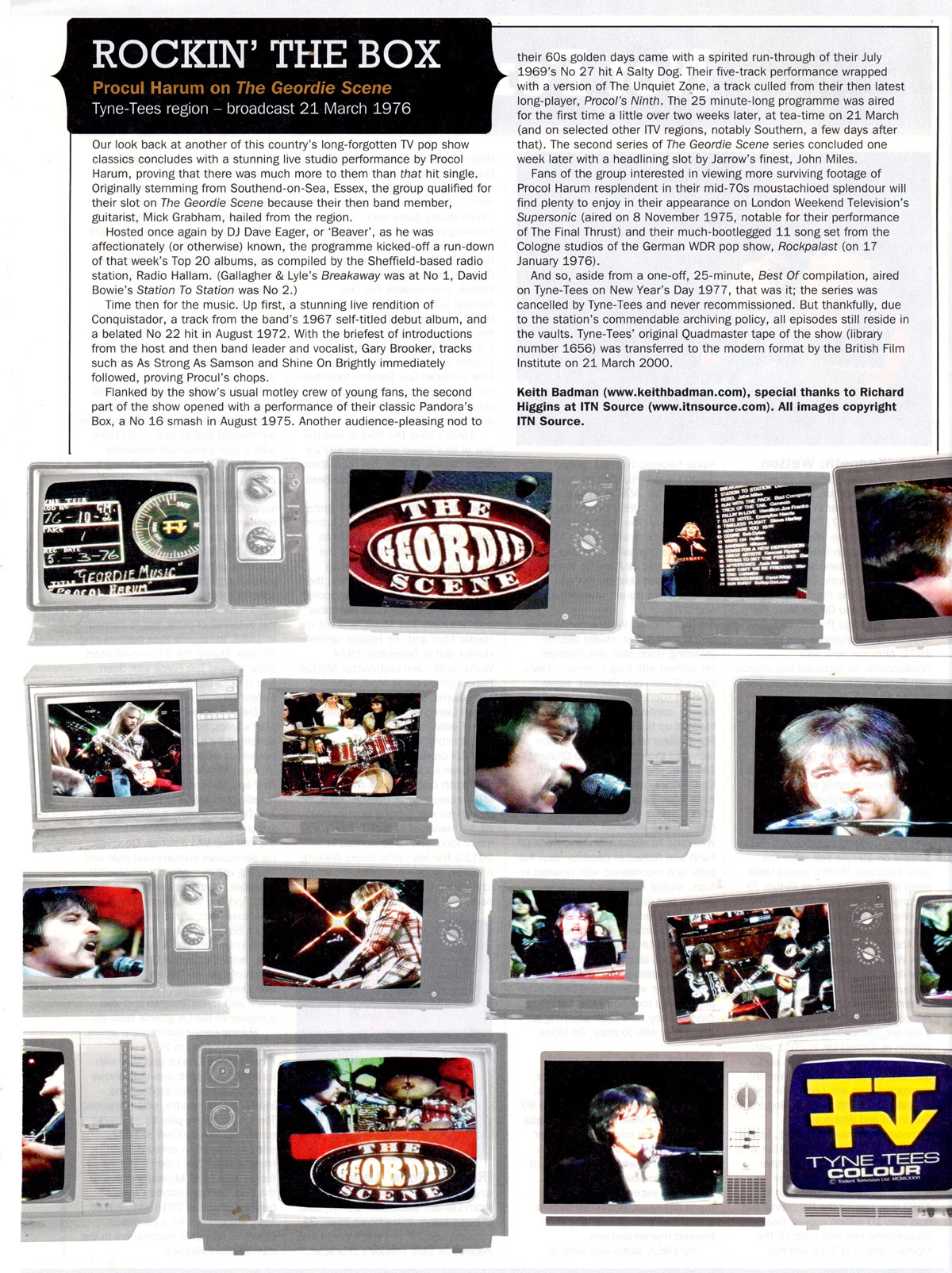 Valued BtP contributor Jim Corbett sends this useful article about Procol's UK TV career. Click on the thumbnail to see the pictures