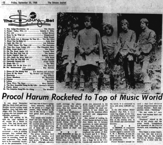 assume that Procol didn't either. The article (left) was printed in The Ottawa Journal, 19 October 1968 (Keith Reid's 22nd birthday, incidentally)