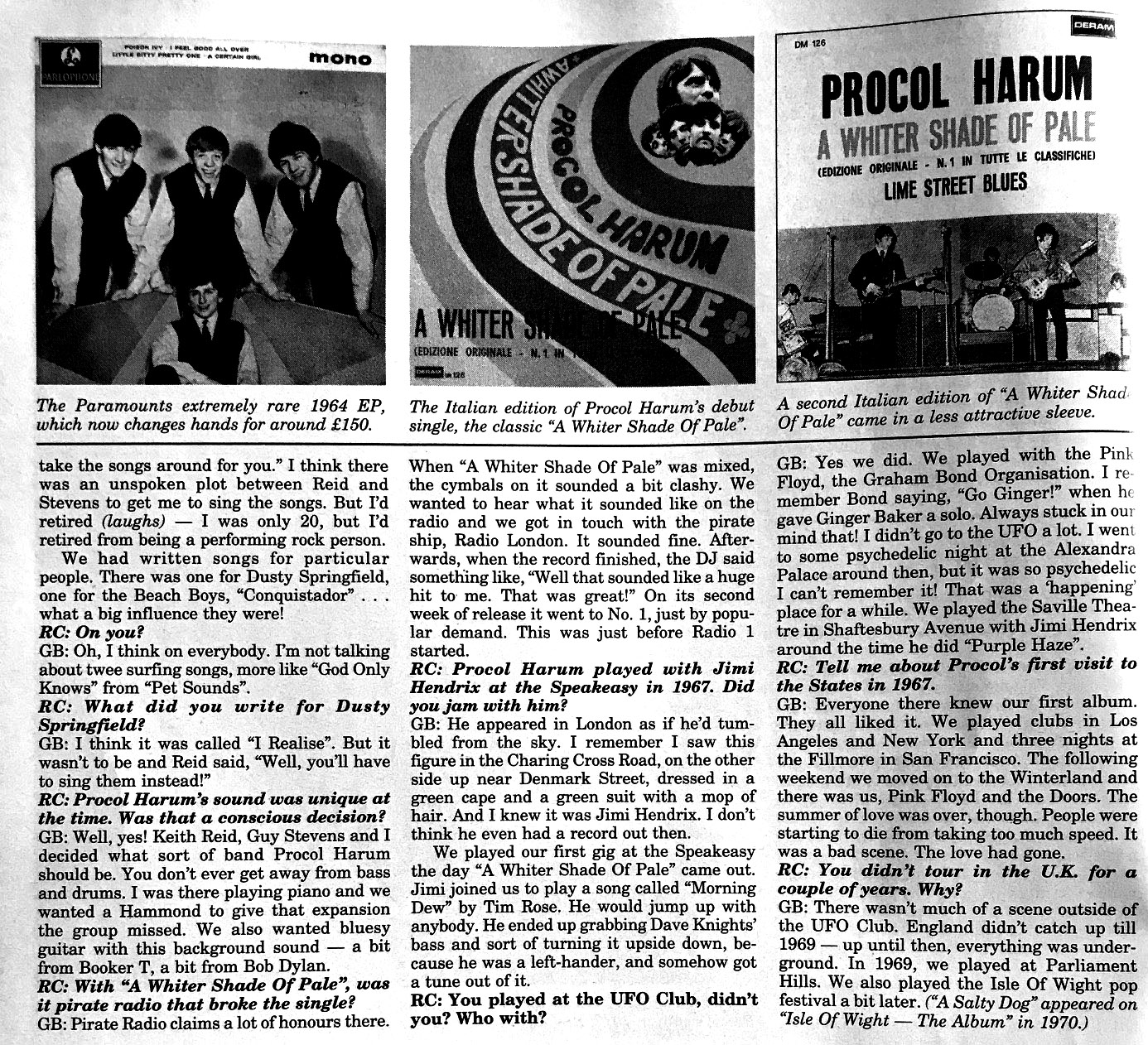GB: Pirate Radio claims a lot of honours there. When 'A Whiter Shade Of Pale' was mixed, the cymbals on it sounded a bit clashy. We wanted to hear what it sounded like on the radio and we got in touch with the pirate ship, Radio London. It sounded fine. Afterwards, when the record finished, the DJ said something like, 'Well that sounded like a huge hit to me. That was great!' On its second week of release it went to No. 1, just by popular demand. This was just before Radio 1 started.
