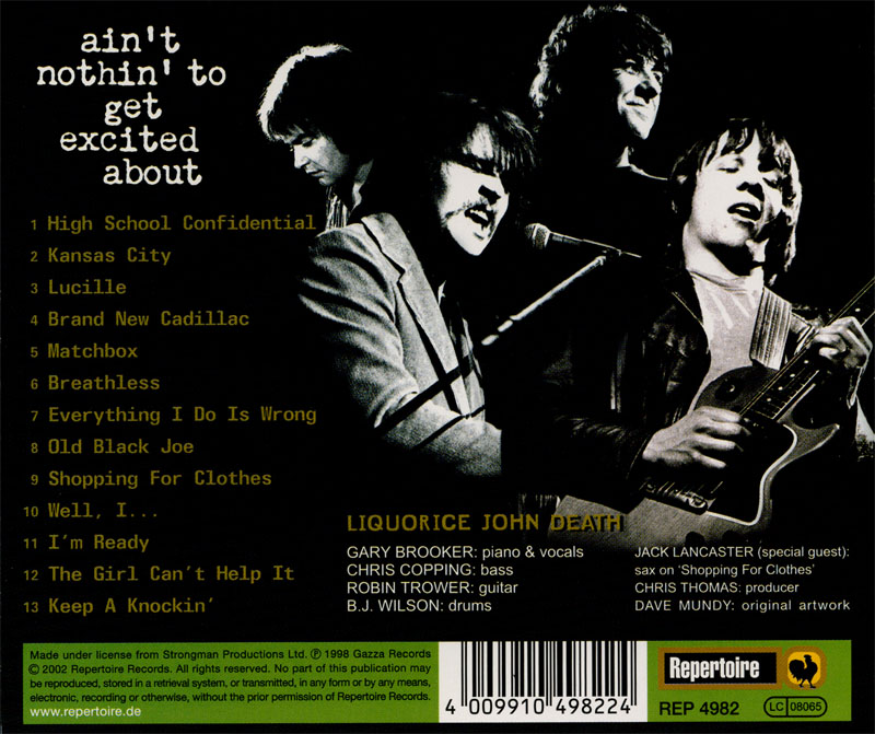 Maybe the powers that be didn’t think Procol Harum should be recording a rock’n’roll album at that stage in their career, even under a pseudonym. Or perhaps it was felt that Liquorice John Death wouldn’t receive the attention it deserved. Maybe it was simply due to carelessness that, once completed, the precious tape vanished from the band’s possession.