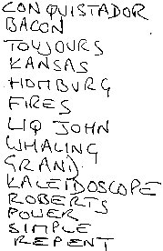 Set list retrieved from Brooker's piano after this particularly brilliant and powerful gig. Presumably Keith Reid's writing? The 'K' is similar to his initial on the 'signed' cover of Procol's Ninth – check your vinyl version, as the 'K' was cropped on the cover of the Castle CD re-issue – and the 'R' of 'Repent' also corresponds to his signature. RC |