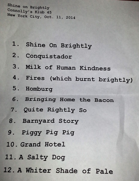 'It went well though we need a better turnout next time. We’ve got to find all the NY Procolites and Palers! The next gig will include our excellent, new organist, making us a true five-piece Procol Harum tribute band.' writes bassist Tom Mahony. |