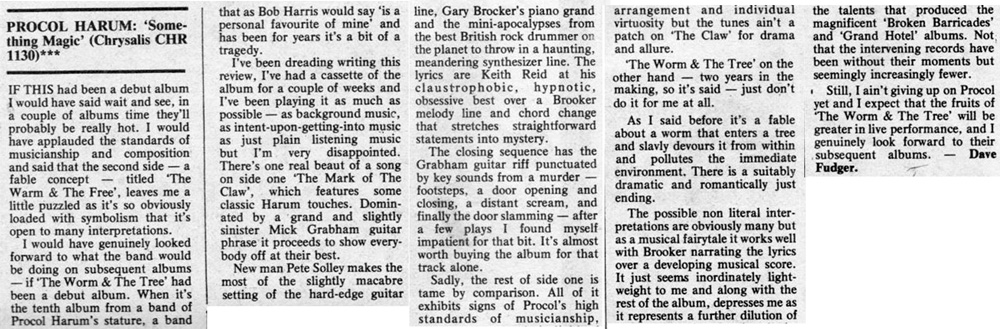 I would have genuinely looked forward to what the band would be doing on subsequent albums – if The Worm & The Tree had been a début album. When it’s the tenth album from a band of Procol Harum’s stature, a band that as Bob Harris would say “is a personal favorite of mine” and has been for years it’s a bit of a tragedy.