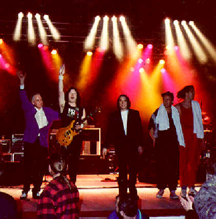 entuzjastyczne recenzje. "Takie chwile zdarzają się raz na milion lat” – skomentował warszawski koncert Procol Harum z 1992 r. na łamach magazynu “Tylko Rock” nieżyjący już, popularny dziennikarz Tomasz Beksiński. Na zdjęciu od lewej stoją: G. Brooker, G. Whitehorn, M. Fisher, D. Bronze (gitara basowa) i M. Brzezicki. |