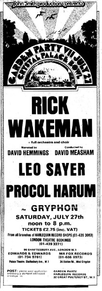 ... Procol Harum making one of their rare London appearances and playing their first outdoor gig for three years ...