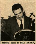 Pictured above is Bill Eyden, the session drummer who is heard on Procol Harum's recording of A Whiter Shade Of Pale. He stood in for Bobby Harrison - who was away ill - at the session which produced the group's hit single, and received a 15-guineas standard payment for his work. A spokesman for the Harum told the NME: 'This is the standard Union rate and, let's face it, if the record hadn't clicked, he would have earned more than the rest of us'. Meanwhile Bobby Harrison, although not on the disc and no longer with the Harum, hopes to receive £10,000 as his share of the group's royalties.