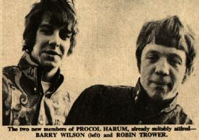 The two new instrumentalists to join are lead guitarist Robin Trower (21) and drummer Barry Wilson (20), who replace Ray Royer and Bobby Harrison.